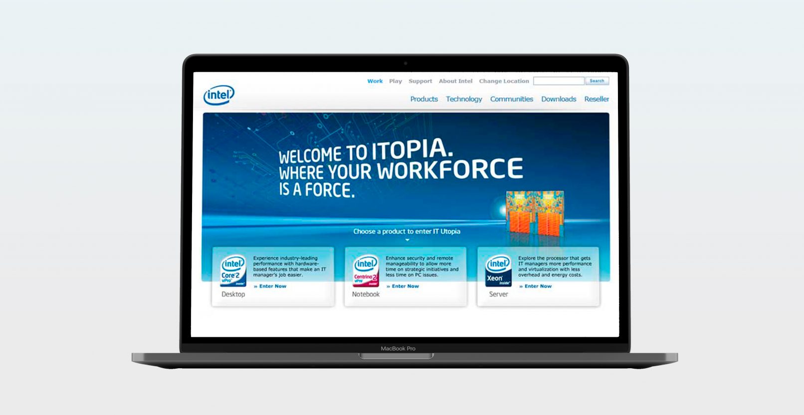 Intel gives IT professionals the most powerful and dependable microchip technology. We created a campaign depicting a place where technology always “works.” introducing Intel’s ITOPIA. Itopia was an very successful global campaign that spanned across media, from print to outdoor, to digital and social (The New York Times, AdWeek)